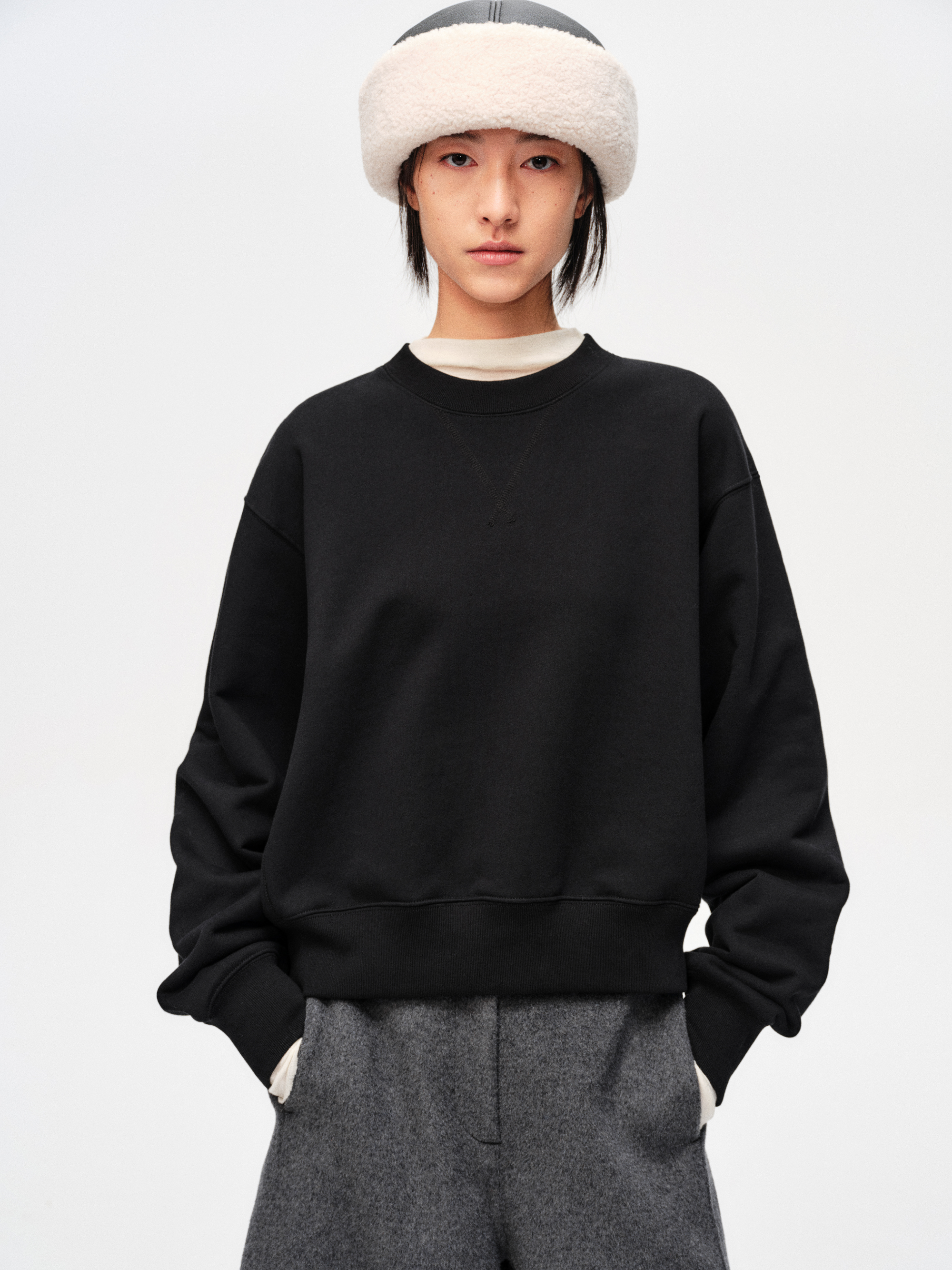 Cropped cotton crewneck sweatshirt