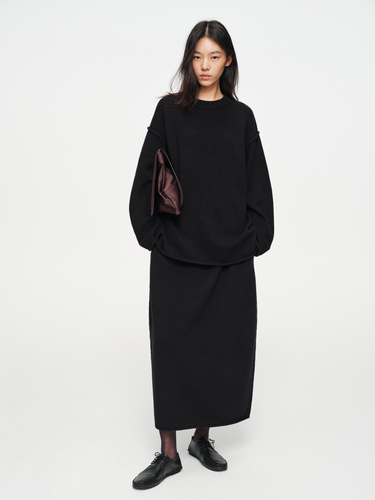 Minimal wool curved-sleeve sweater & skirt set