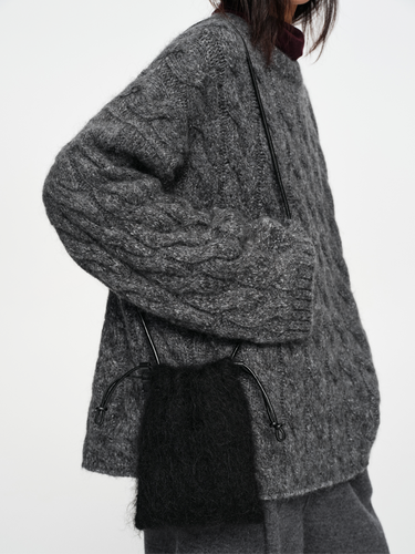 Crafted from a custom-blended fabric of imported alpaca, mohair, and wool, this pouch bag features a voluminous, airy texture with a subtle silky sheen.