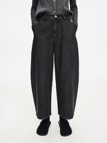 Pure cotton barrel-leg curved jeans