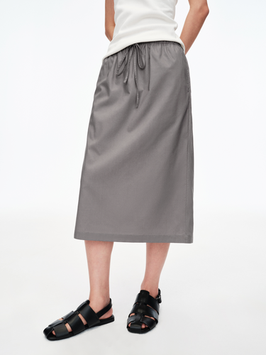 Tencel-cotton drawstring midi skirt