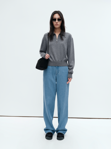 Australian wool blend polo semi-zip knit top