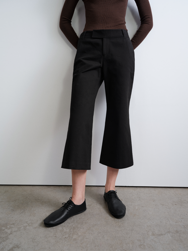 Inspired by the iconic 90s flared silhouette, this cropped flare pant is a timeless staple. Designed with a modern low-rise waist and crafted from brushed cotton twill for structured comfort and everyday versatility.
