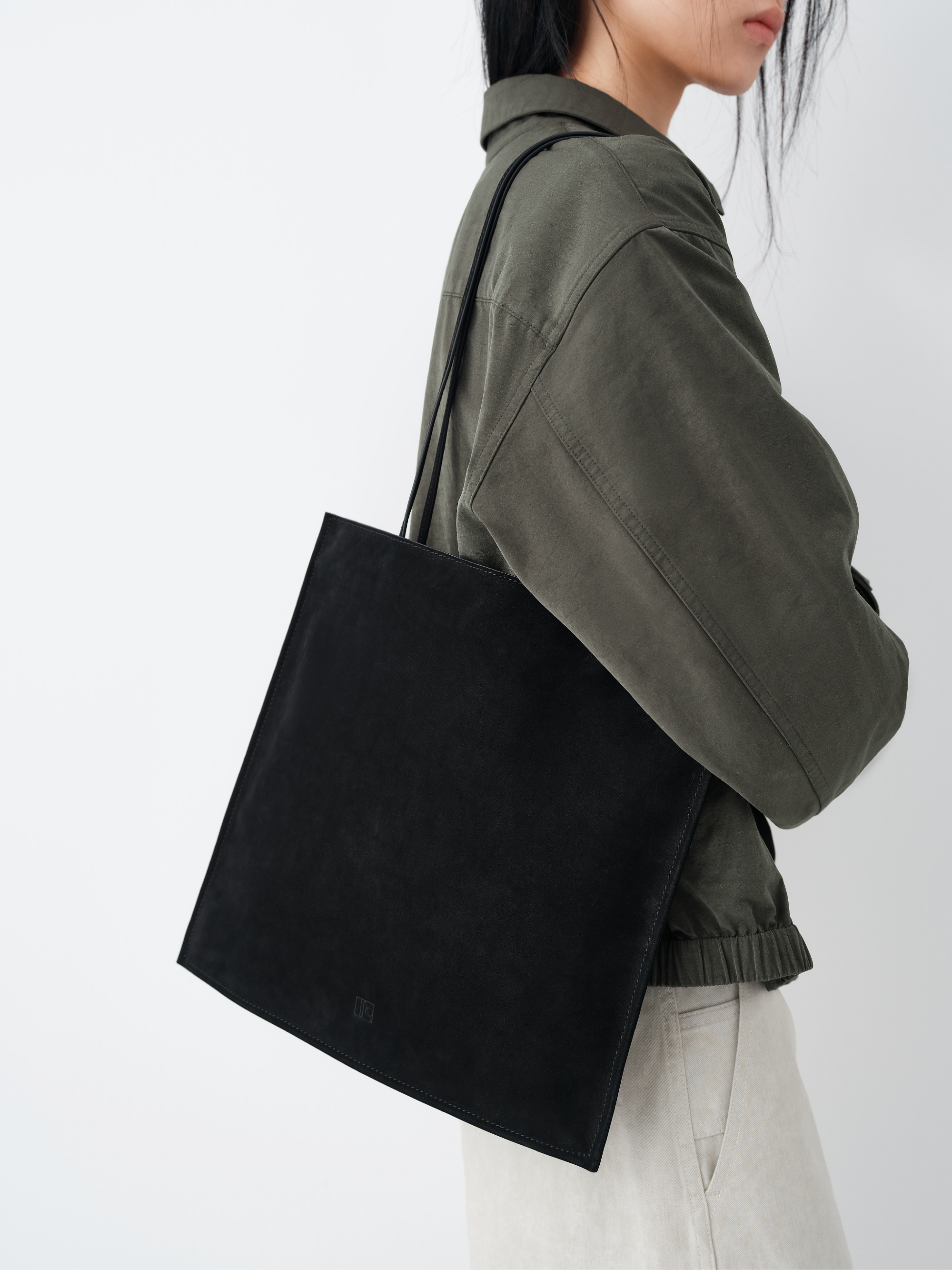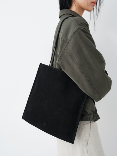 Crafted from soft top-grain leather, this tote bag features a clean geometric silhouette with structured edge stitching that enhances its sharp, architectural lines. The minimalist square shape balances refinement and practicality, creating a versatile accessory suited for both daily commuting and casual styling.