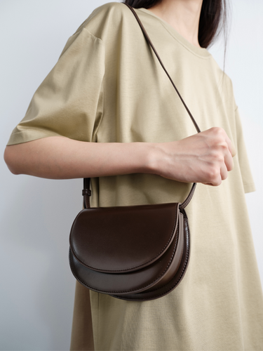 Glossy cowhide horsebit saddle bag in small size