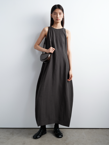 Made from premium French flax linen, this sleeveless dress blends natural structure with subtle fluidity. The linen fibers are long, fine, and resilient — sourced from Normandy, a top-tier linen-producing region known for its chemical-free cultivation. The yarns are more even and refined than standard flax, featuring a natural sheen and moisture absorption four times greater than cotton.