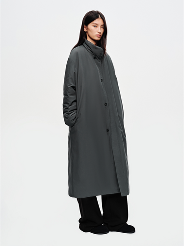The insulation structure is both lofty and resilient, with a high Clo value of 1.8-2.3 for excellent warmth retention. A three-dimensional, oversized cut with a dropped-shoulder design has been meticulously tailored to maintain volume without bulkiness. Finished with a retro-inspired stand collar, this jacket offers a stylishly practical look, wrapping you in effortless warmth and comfort.