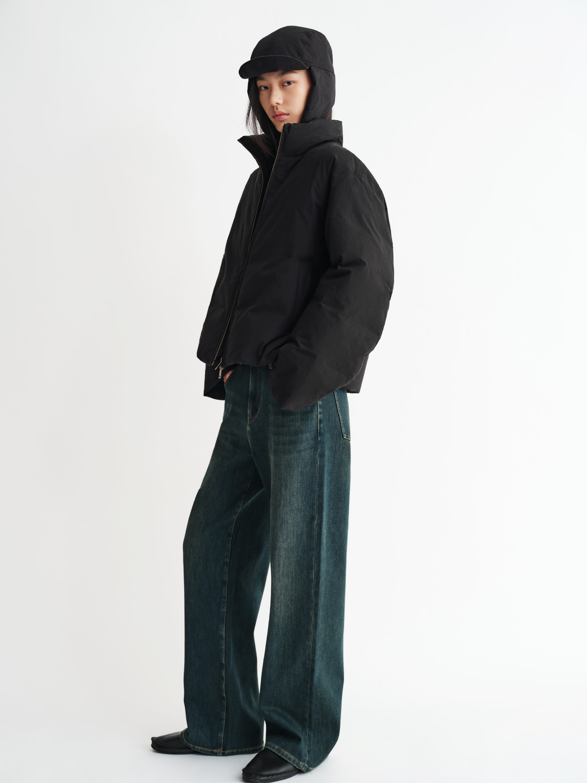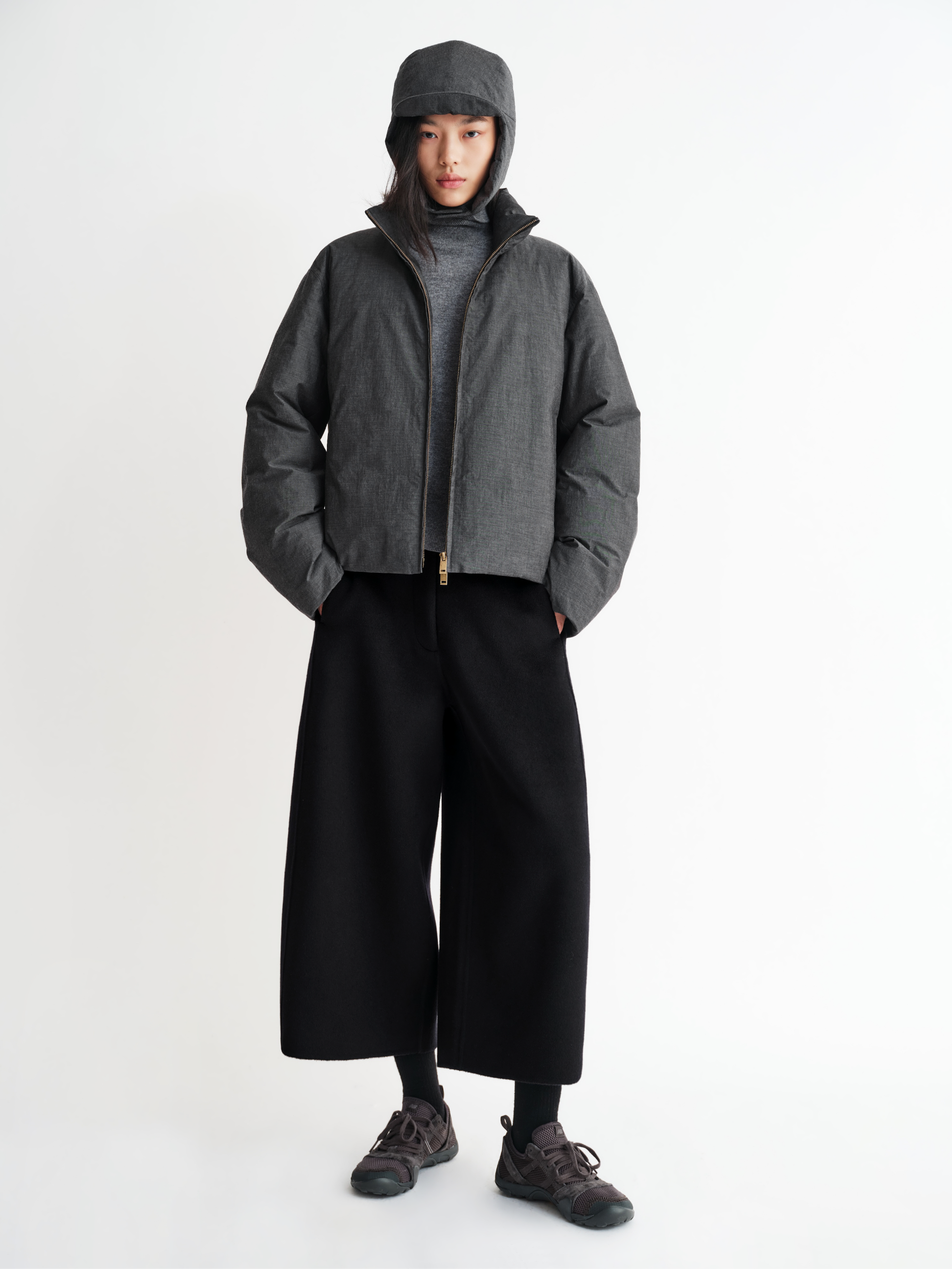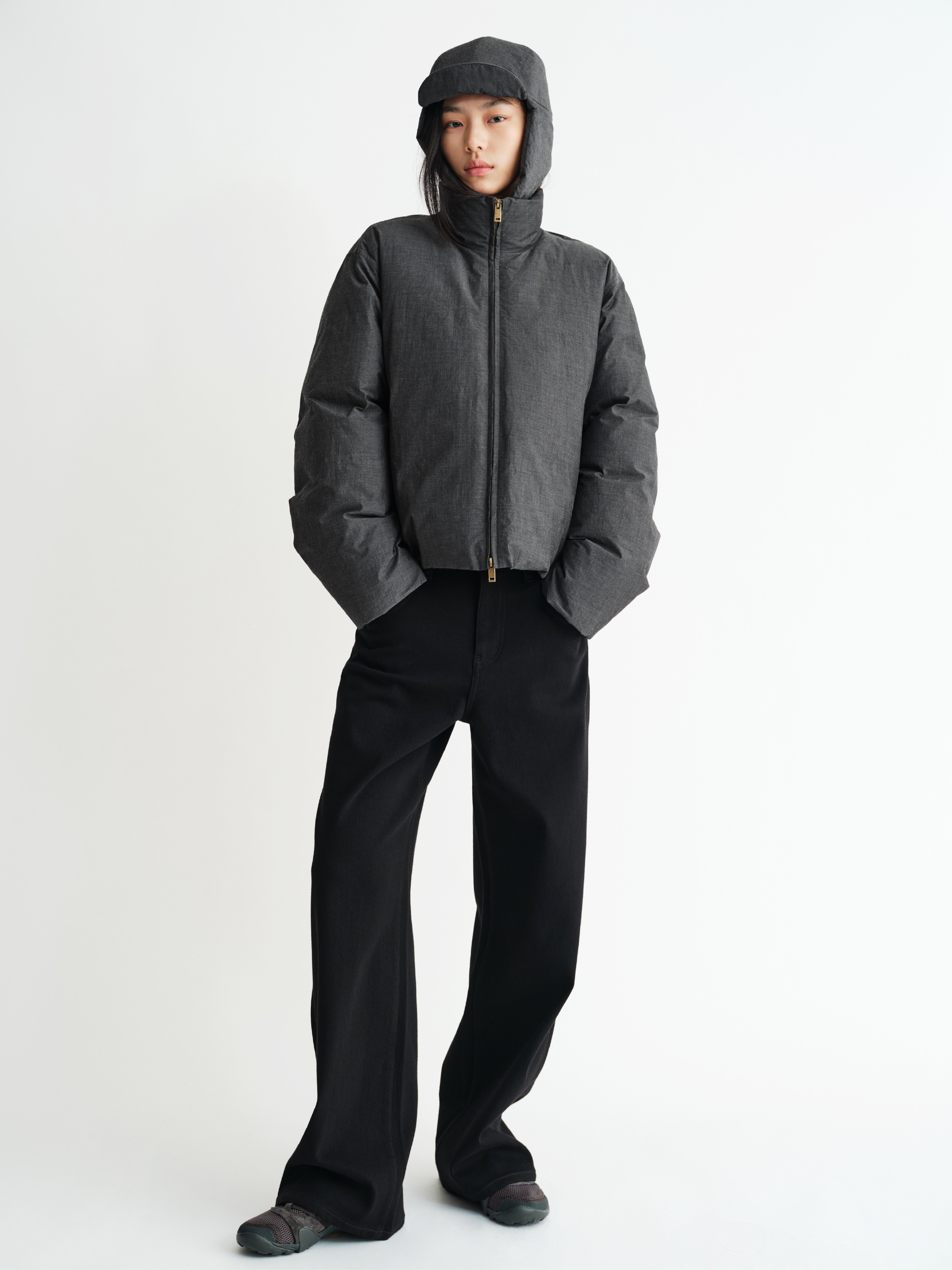 A slightly loose straight shape offers balance between warmth and sleekness, ensuring comfort without bulk.