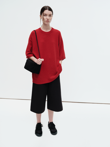 Natural cotton linen blend chunky knit short-sleeve top