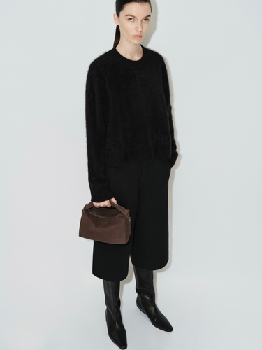 This pure cashmere sweater and vest are crafted from premium, exclusive spun and washed white cashmere from rare, high-standard, fine long white cashmere fibers sourced from Inner Mongolia. The yarn is carefully processed with 100% pure water washing, using advanced French FR-imported equipment to gently clean the cashmere fibers, naturally enhancing their long-haired texture. A special technique is used to solidify and shape the cleaned fibers, addressing issues like pilling and shedding. After the brushing process, the fabric achieves 1.5 times the thickness, with a fluffy, smooth texture and a soft sheen. The cuffs feature a 2x2 rib design for a full, three-dimensional shape that is comfortable to wear and easy to put on or take off without deformation. The short, voluminous fit, paired with raglan long sleeves, gives the piece a fashionable, relaxed style. The classic ribbed crewneck and collar ribbing details provide a loose, well-fitting shape that resists deformation. This piece offers a variety of styling options, creating a laid-back winter atmosphere.