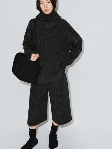 Australian imported extra-fine merino wool sweater / drawstring wool cropped pants / balaclava hood set