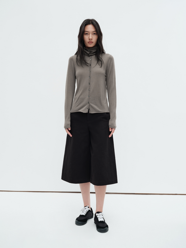 Merino water-soluble wool draped collar button-up knit cardigan top