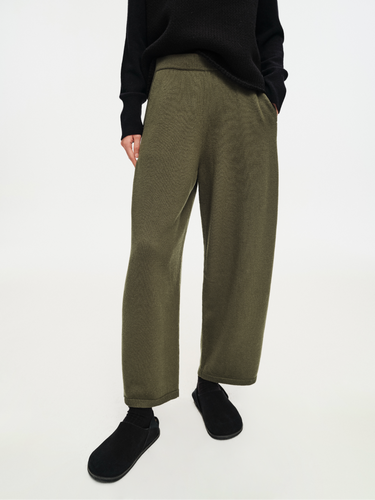 Pure merino wool barrel-leg tailored knit pants