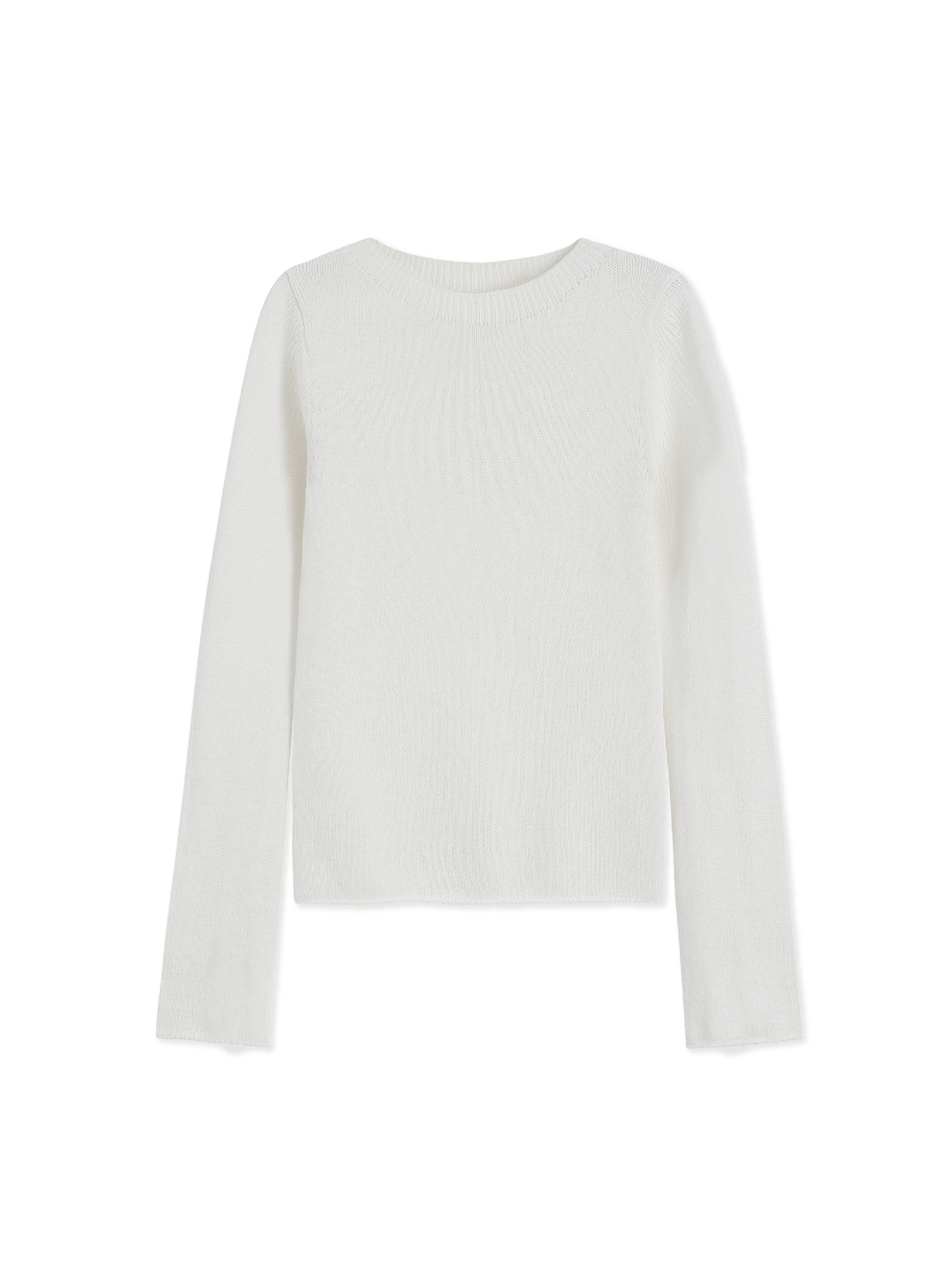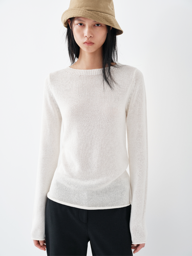 This slim knit pullover is designed with a clean crew neckline and a softly structured silhouette, creating a refined yet understated look. The gently fitted cut enhances natural body lines while maintaining a relaxed, gender-neutral attitude. Subtle rolled edges at the cuffs and hem add quiet dimension and depth.