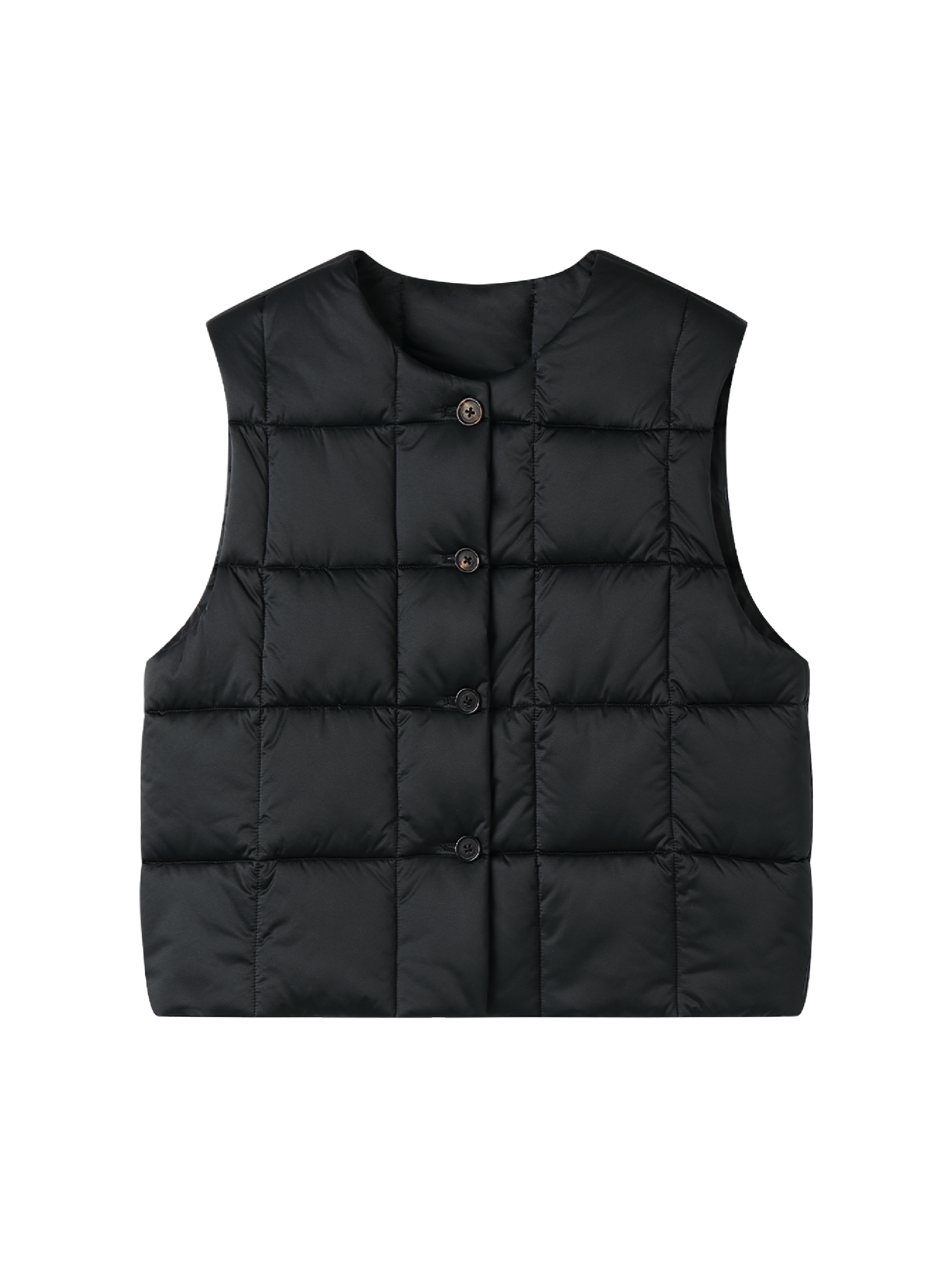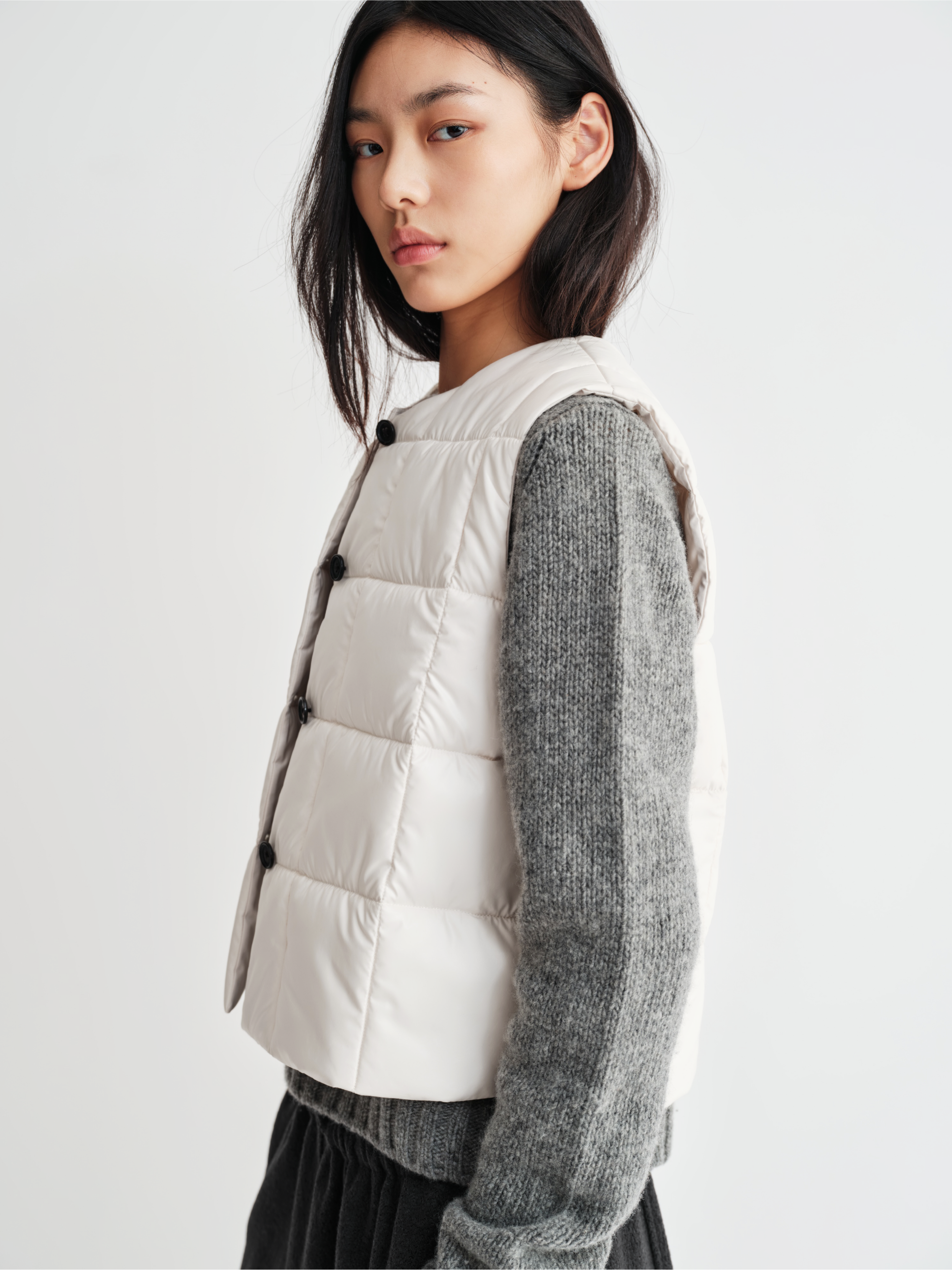 • Versatile layering – boxy short-length vest pairs effortlessly with coats or knits for multi-season styling