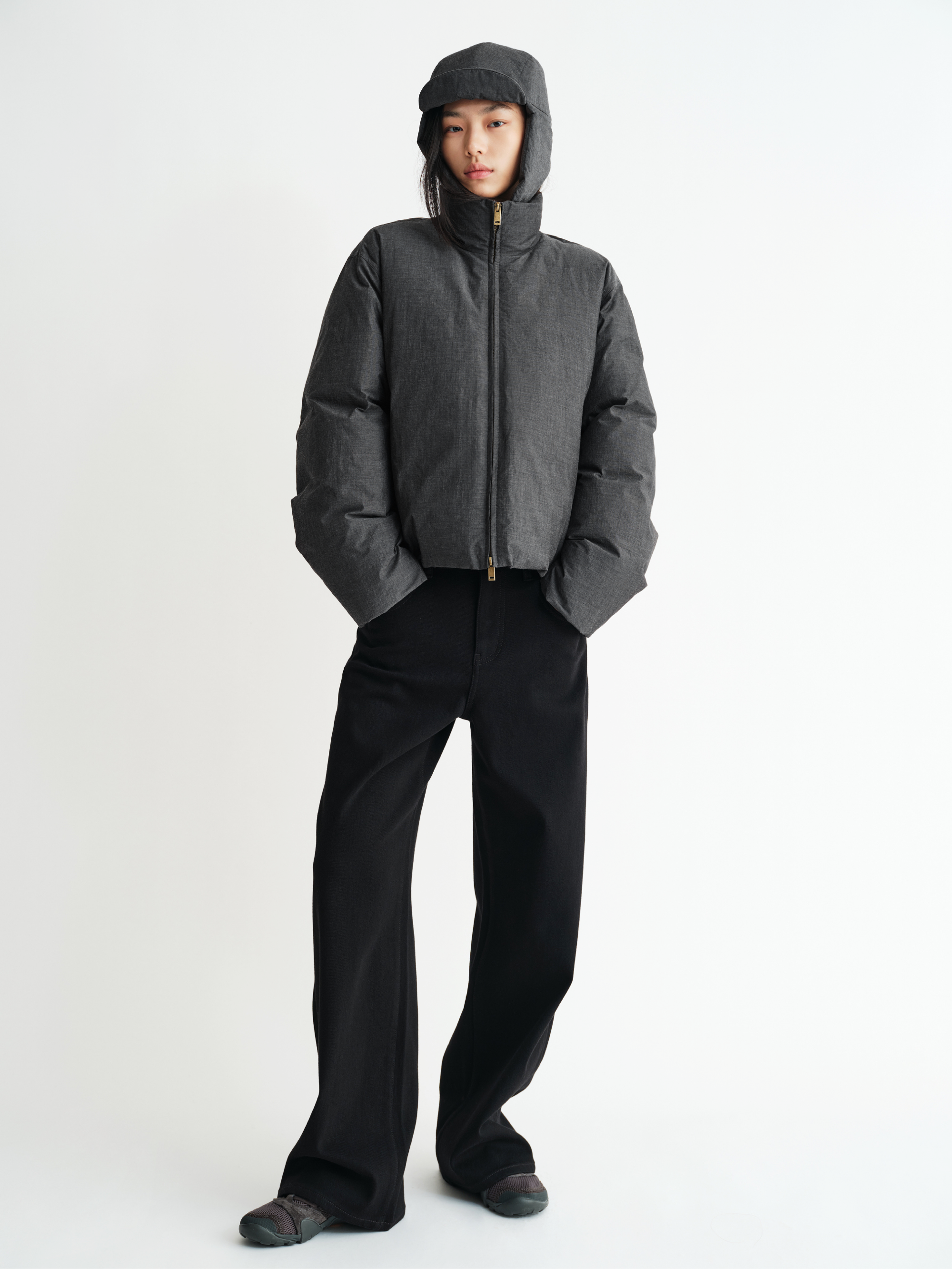 Finished with matte silver jaja-engraved button details at the waistband, elevating the overall texture and finish.